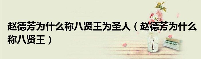 大家好,小晋来为大家解答以下问题,关于赵德芳为什么称八贤王为圣人,赵德芳为什么称八贤王很多人还不知道,今天让我们一起来看看吧!