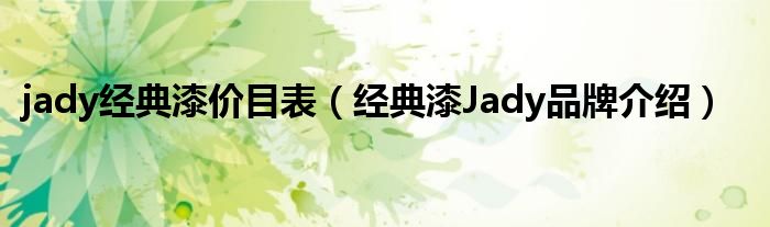 大家好,小源来为大家解答以上问题。jady经典漆价目表,经典漆Jady品牌介绍很多人还不知道,现在让我们一起来看看吧!