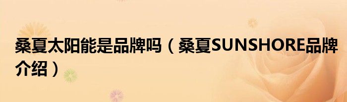 大家好,小源来为大家解答以上问题。桑夏太阳能是品牌吗,桑夏SUNSHORE品牌介绍很多人还不知道,现在让我们一起来看看吧!