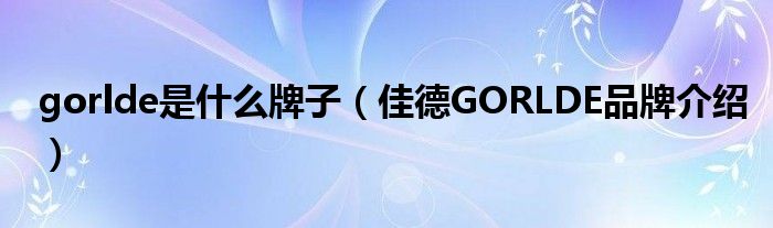 gorlde是什么牌子(佳德GORLDE品牌介绍)