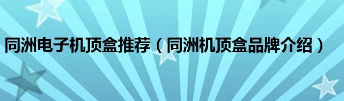 同洲电子机顶盒推荐(同洲机顶盒品牌介绍)