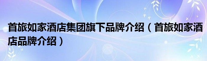 首旅如家酒店集团旗下品牌介绍(首旅如家酒店品牌介绍)