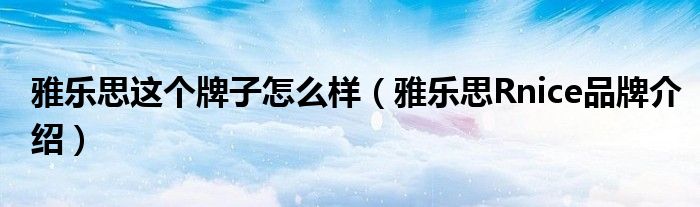 大家好,小源来为大家解答以上问题。雅乐思这个牌子怎么样,雅乐思Rnice品牌介绍很多人还不知道,现在让我们一起来看看吧!