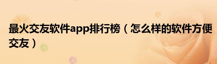 大家好,小常来为大家解答以上问题。最火交友软件app排行榜,怎么样的软件方便交友很多人还不知道,现在让我们一起来看看吧!