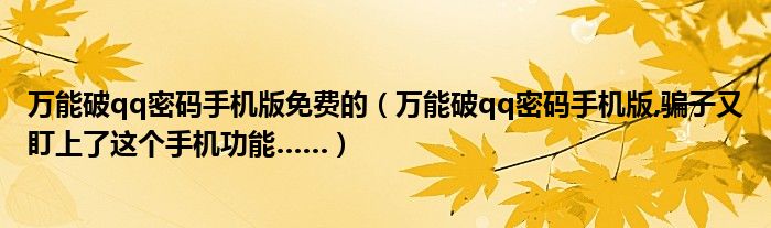 大家好,小常来为大家解答以上问题。万能破qq密码手机版免费的,万能破qq密码手机版,骗子又盯上了这个手机功能……很多人还不知道,现在让我们一起来看看吧!
