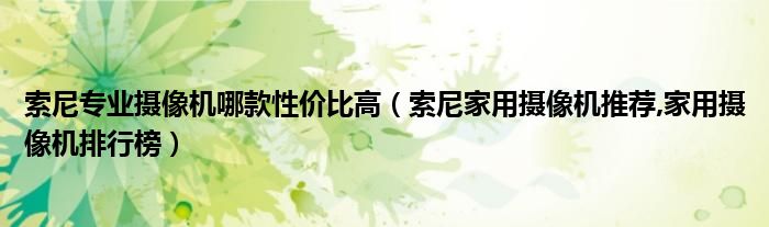 大家好,小常来为大家解答以上问题。索尼专业摄像机哪款性价比高,索尼家用摄像机推荐,家用摄像机排行榜很多人还不知道,现在让我们一起来看看吧!