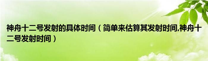 大家好,小常来为大家解答以上问题。神舟十二号发射的具体时间,简单来估算其发射时间,神舟十二号发射时间很多人还不知道,现在让我们一起来看看吧!