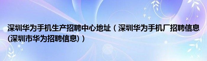 大家好,小常来为大家解答以上问题。深圳华为手机生产招聘中心地址,深圳华为手机厂招聘信息(深圳市华为招聘信息)很多人还不知道,现在让我们一起来看看吧!