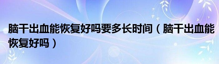 脑干出血能恢复好吗要多长时间(脑干出血能恢复好吗)