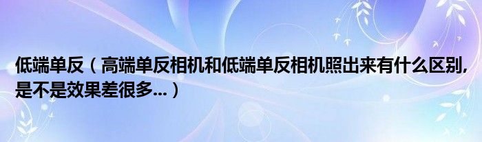 1,高端单反相机和低端单反相机照出来有什么区别,是不是效果差很多?...:高端单反相机和低端单反相机照最大的区别是一个是全幅相机,一个是非全副相机。效果除照片成像质量外还和拍摄者的水平有关,高端单反相机和低端单反相机都可以出好效果。单反相机和数码相机主要区别是ccd不一样;效果问题同上。