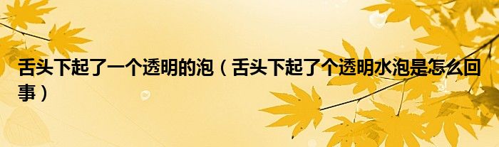 大家好,linda来为大家解答以上的问题。舌头下起了一个透明的泡,舌头下起了个透明水泡是怎么回事很多人还不知道,现在让我们一起来看看吧!
