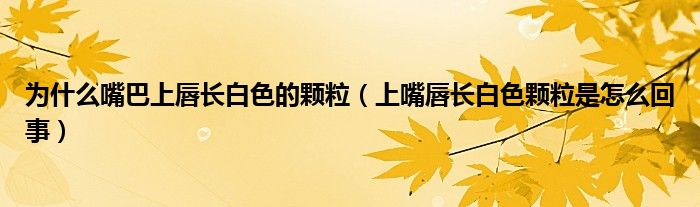 大家好,linda来为大家解答以上的问题。为什么嘴巴上唇长白色的颗粒,上嘴唇长白色颗粒是怎么回事很多人还不知道,现在让我们一起来看看吧!