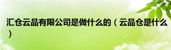 汇仓云品有限公司是做什么的(云品仓是什么)