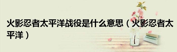 大家好,来宝来为大家解答以下问题,火影忍者太平洋战役是什么意思,火影忍者太平洋很多人还不知道,今天让我们一起来看看吧!