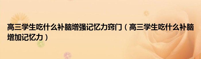 大家好,linda来为大家解答以上的问题。高三学生吃什么补脑增强记忆力窍门,高三学生吃什么补脑增加记忆力很多人还不知道,现在让我们一起来看看吧!