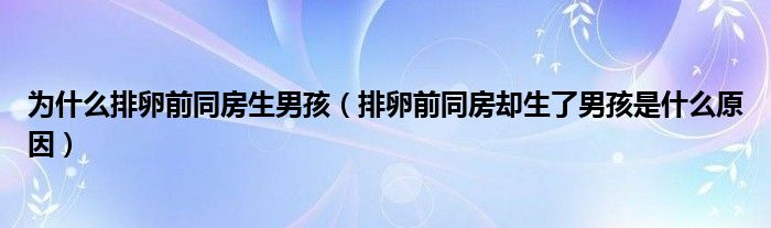 大家好,linda来为大家解答以上的问题。为什么排卵前同房生男孩,排卵前同房却生了男孩是什么原因很多人还不知道,现在让我们一起来看看吧!