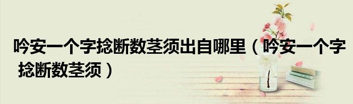 大家好,小晋来为大家解答以下问题,关于吟安一个字捻断数茎须出自哪里,吟安一个字 捻断数茎须很多人还不知道,今天让我们一起来看看吧!