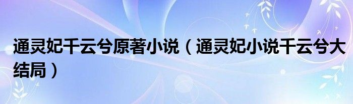 大家好,小晋来为大家解答以下问题,关于通灵妃千云兮原著小说,通灵妃小说千云兮大结局很多人还不知道,今天让我们一起来看看吧!