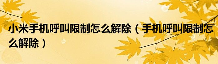 大家好,小晋来为大家解答以下问题,关于小米手机呼叫限制怎么解除,手机呼叫限制怎么解除很多人还不知道,今天让我们一起来看看吧!