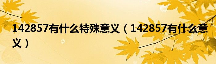 大家好,小晋来为大家解答以下问题,关于142857有什么特殊意义,142857有什么意义很多人还不知道,今天让我们一起来看看吧!