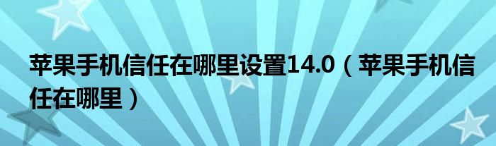 大家好,小晋来为大家解答以下问题,关于苹果手机信任在哪里设置14.0,苹果手机信任在哪里很多人还不知道,今天让我们一起来看看吧!
