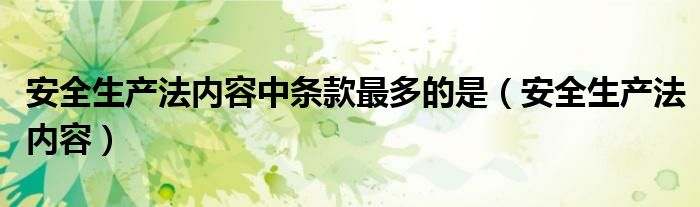 大家好,小晋来为大家解答以下问题,关于安全生产法内容中条款最多的是,安全生产法内容很多人还不知道,今天让我们一起来看看吧!