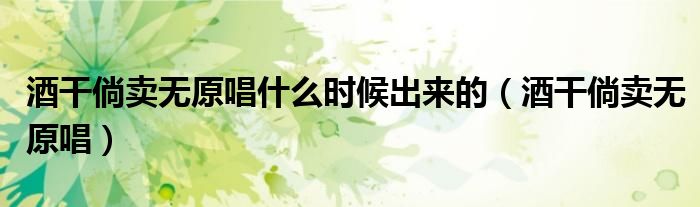 大家好,小晋来为大家解答以下问题,关于酒干倘卖无原唱什么时候出来的,酒干倘卖无原唱很多人还不知道,今天让我们一起来看看吧!