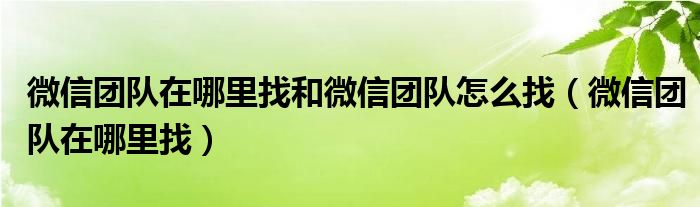 微信团队在哪里找和微信团队怎么找(微信团队在哪里找)
