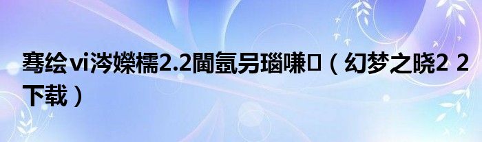 骞绘ⅵ涔嬫檽2.2閫氬叧瑙嗛,幻梦之晓2 2下载很多人还不知道,乐乐来为大家解答以上问题,现在让我们一起来看看吧!