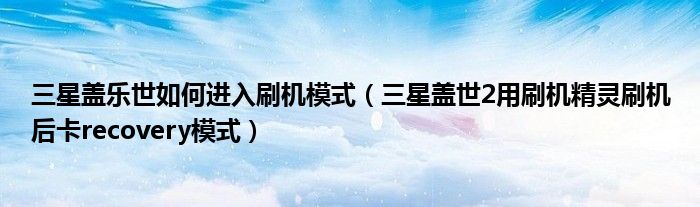 大家好,小常来为大家解答以上问题。三星盖乐世如何进入刷机模式,三星盖世2用刷机精灵刷机后卡recovery模式很多人还不知道,现在让我们一起来看看吧!