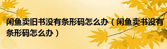 闲鱼卖旧书没有条形码怎么办(闲鱼卖书没有条形码怎么办)