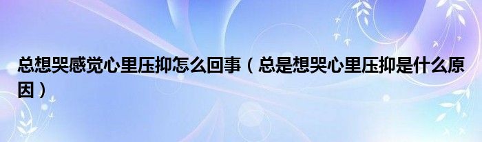 大家好,linda来为大家解答以上的问题。总想哭感觉心里压抑怎么回事,总是想哭心里压抑是什么原因很多人还不知道,现在让我们一起来看看吧!