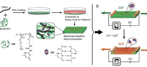 科学家们使用从树木细胞壁中提取和加工的纤维素纳米纤维。纳米原纤维甚至比标准纸中的微纤维还要细,形成一种完全透明、几乎像玻璃一样的纸。这种材料坚硬而坚固,对轻质结构很有吸引力。其特性甚至可与铝合金相媲美。在他们的工作中,研究团队将电力应用于这些基于纤维素纳米原纤维的纳米纸。通过特殊设计的分子变化,材料因此变得灵活。该过程是可逆的,可以通过开/关开关进行控制。