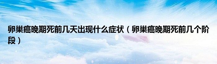 大家好,linda来为大家解答以上的问题。卵巢癌晚期死前几天出现什么症状,卵巢癌晚期死前几个阶段很多人还不知道,现在让我们一起来看看吧!