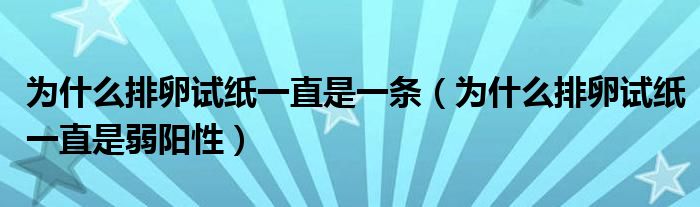 大家好,linda来为大家解答以上的问题。为什么排卵试纸一直是一条,为什么排卵试纸一直是弱阳性很多人还不知道,现在让我们一起来看看吧!