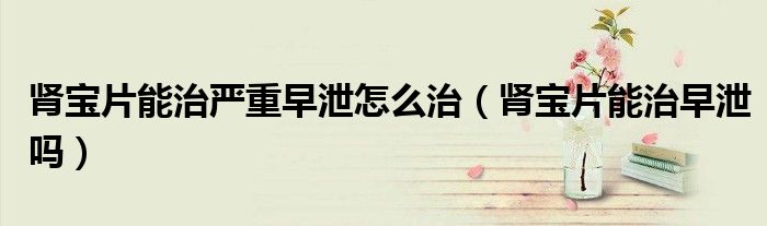 大家好,linda来为大家解答以上的问题。肾宝片能治严重早泄怎么治,肾宝片能治早泄吗很多人还不知道,现在让我们一起来看看吧!