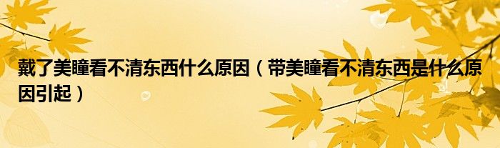 大家好,linda来为大家解答以上的问题。戴了美瞳看不清东西什么原因,带美瞳看不清东西是什么原因引起很多人还不知道,现在让我们一起来看看吧!
