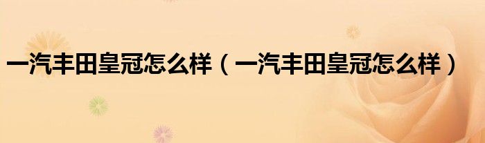 一汽丰田皇冠怎么样(一汽丰田皇冠怎么样)