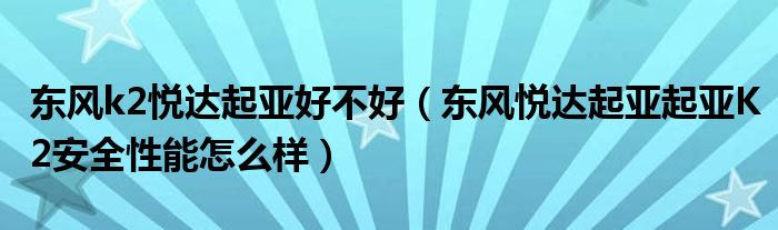 大家好,阳阳来为大家讲解下。东风k2悦达起亚好不好,东风悦达起亚起亚K2安全性能怎么样很多人还不知道,现在让我们一起来看看吧!