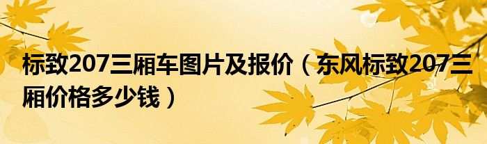 最佳答案大家好,阳阳来为大家讲解下。标致207三厢车图片及报价,东风标致207三厢价格多少钱很多人还不知道,现在让我们一起来看看吧!1、东风标致207轿车价格为7.48万-10.58万:1。2、标致207是东风标致于2010年5月28日推出的国产轿车。3、车身较短,采用PSA的HDI发动机。4、底盘技术与德国宝马联合开发。5...