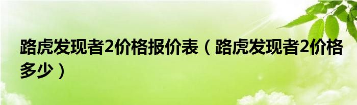 大家好,阳阳来为大家讲解下。路虎发现者2价格报价表,路虎发现者2价格多少很多人还不知道,现在让我们一起来看看吧!