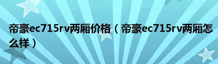 大家好,阳阳来为大家讲解下。帝豪ec715rv两厢价格,帝豪ec715rv两厢怎么样很多人还不知道,现在让我们一起来看看吧!