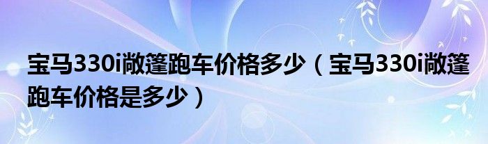 大家好,阳阳来为大家讲解下。宝马330i敞篷跑车价格多少,宝马330i敞篷跑车价格是多少很多人还不知道,现在让我们一起来看看吧!