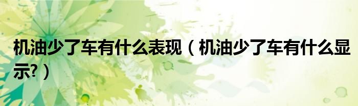 大家好,小美来为大家解答以上问题。机油少了车有什么表现,机油少了车有什么显示?很多人还不知道,现在让我们一起来看看吧!