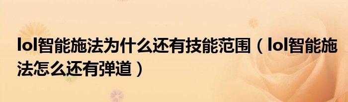 关于lol智能施法为什么还有技能范围,lol智能施法怎么还有弹道这个很多人还不知道,今天菲菲来为大家解答以上的问题,现在让我们一起来看看吧!