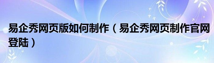 易企秀网页版如何制作(易企秀网页制作官网登陆)