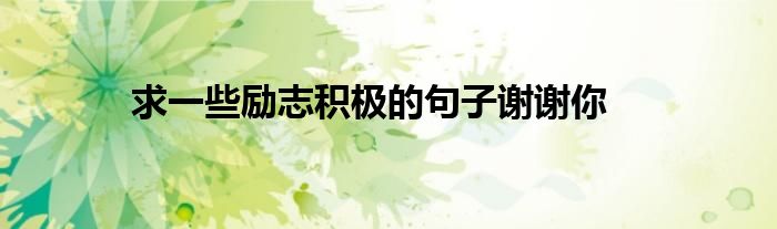 关于求一些励志积极的句子谢谢你这个很多人还不知道,今天菲菲来为大家解答以上的问题,现在让我们一起来看看吧!