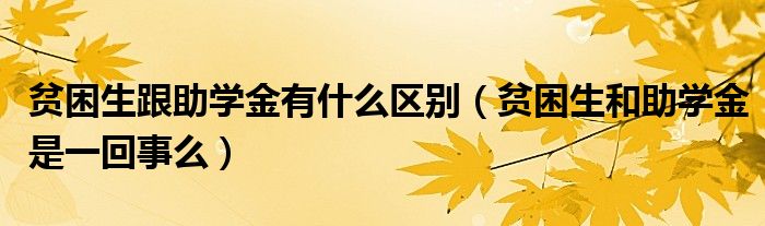关于贫困生跟助学金有什么区别,贫困生和助学金是一回事么这个很多人还不知道,今天菲菲来为大家解答以上的问题,现在让我们一起来看看吧!