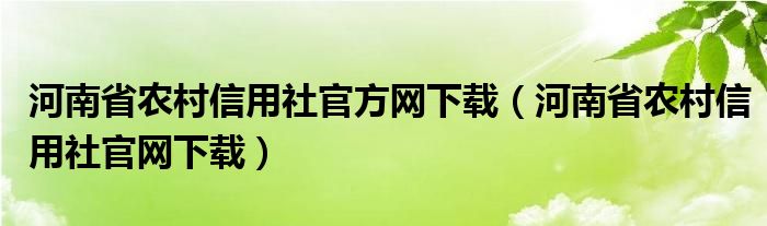 河南省农村信用社官方网下载(河南省农村信用社官网下载)