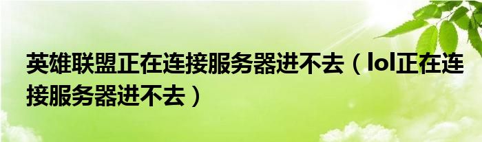 英雄联盟正在连接服务器进不去(lol正在连接服务器进不去)